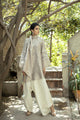 Thistle helps you capture the spirit of freshness with its classic ivory Cotton Net shirt designed with hand woven organza border. It is adorned with beautiful cut work on the collar and lace inserts on the front and the shirt hem. This shirt is paired with scalloped side slit pants with lace detail. This ensemble encapsulates shades of summer and make up for a wardrobe must-have!
