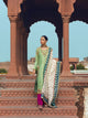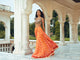 The French Net pishwas with Cotton Silk gold printed lining is adorned with gorgeous delicate zardozi floral buties and chan to make a lasting impact. The elegant pishwas has an organza frill border. Our ravishing showstopper Nisa chadar that is made on a meticulously selected red hue in Katan silk is what makes this outfit timeless. Hand-embellished with intricate work comprising of single thread embroidery in multi vibrant colors makes this outfit simply irresistible. To further uplift the single thread embroidery, it is adorned with delicate naqshi, zari, kora and dabka work. A wearable work of art, created to be cherished for all times to come.