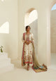 A long pure Raw Silk jacket with hand threadwork and zardozi work all over front, back and sleeves. The jacket is paired with an inner halter cut dress adorned with Swarovski and silver zardozi work which makes this outfit a perfect blend of contemporary and traditional.