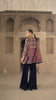 Paired with sleek, loose-cut velvet pants, Rania balances dramatic craftsmanship with refined comfort. Designed for festive evenings and high-fashion soirees, this ensemble carries bold elegance with effortless wearability.