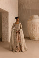 This ruby pink kallidaar bridal ensemble is a dream-worthy ode to all that is romantic and ethereal. Shades of antique gold sparkle through zardozi, sequin and crystal work. The brocade draped dupatta represents an era bygone with a complementing tangerine accent as its border. The heavily worked dupatta has Nizami bagh jaal embellished that completes the ensemble to perfection. Make a subtle statement in this ensemble that is perfect for an eventide celebration.