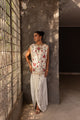 Rosha is a refined luxury ensemble crafted in soft pastel-toned organza, delicately patchworked to create a light, ethereal texture. The neckline is finished with subtle mukesh work, adding a gentle shimmer that enhances the understated elegance of the design.
