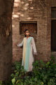 Tina refined luxury ensemble features a beautifully shaded violet base that transitions into a softer mint tone, creating an elegant ombré effect that adds depth and visual movement to the design. The fluid cape silhouette lends contemporary sophistication and can be closed from the front with a discreet hook detail, allowing for versatile styling.