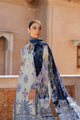 Mia unfolds in soft pastel hues across a floral printed khaddi silk canvas, creating a look that feels light, refined, and timeless. The kurta is delicately finished with an organza panel woven onto the neckline, adorned with intricate embroidery that adds texture and depth. This ensemble is paired with a printed Shikargah pattern organza dupatta and a detailed matching raw silk shalwar, making Mia a graceful essential for the season.